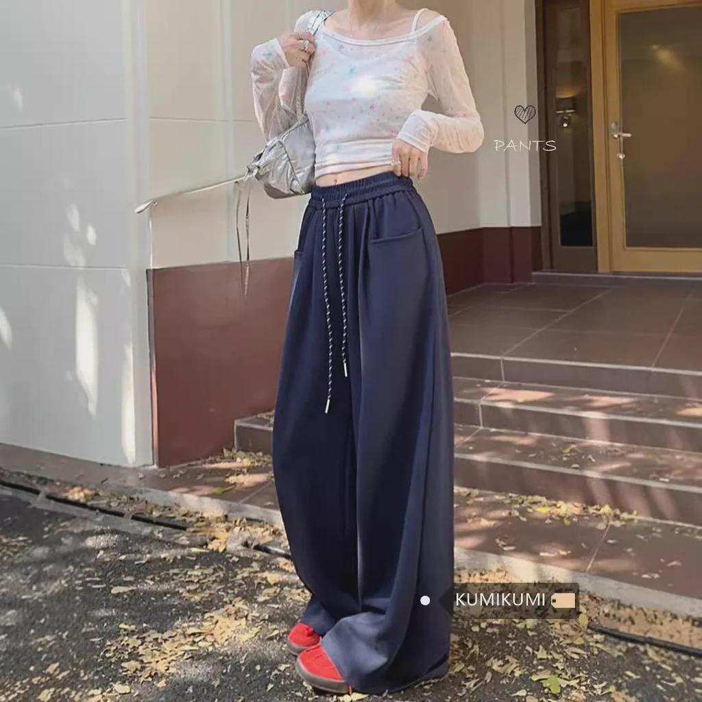 Женские повседневные брюки с широкими штанинами и эластичным поясом: Свободный крой, длина до пола, спортивные брюки для ранней осени