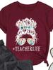 TEACHERLIFE Женская футболка с принтом черепа, с коротким рукавом, с круглым вырезом, свободная, женская футболка, женская футболка, топы, camisetas mujer