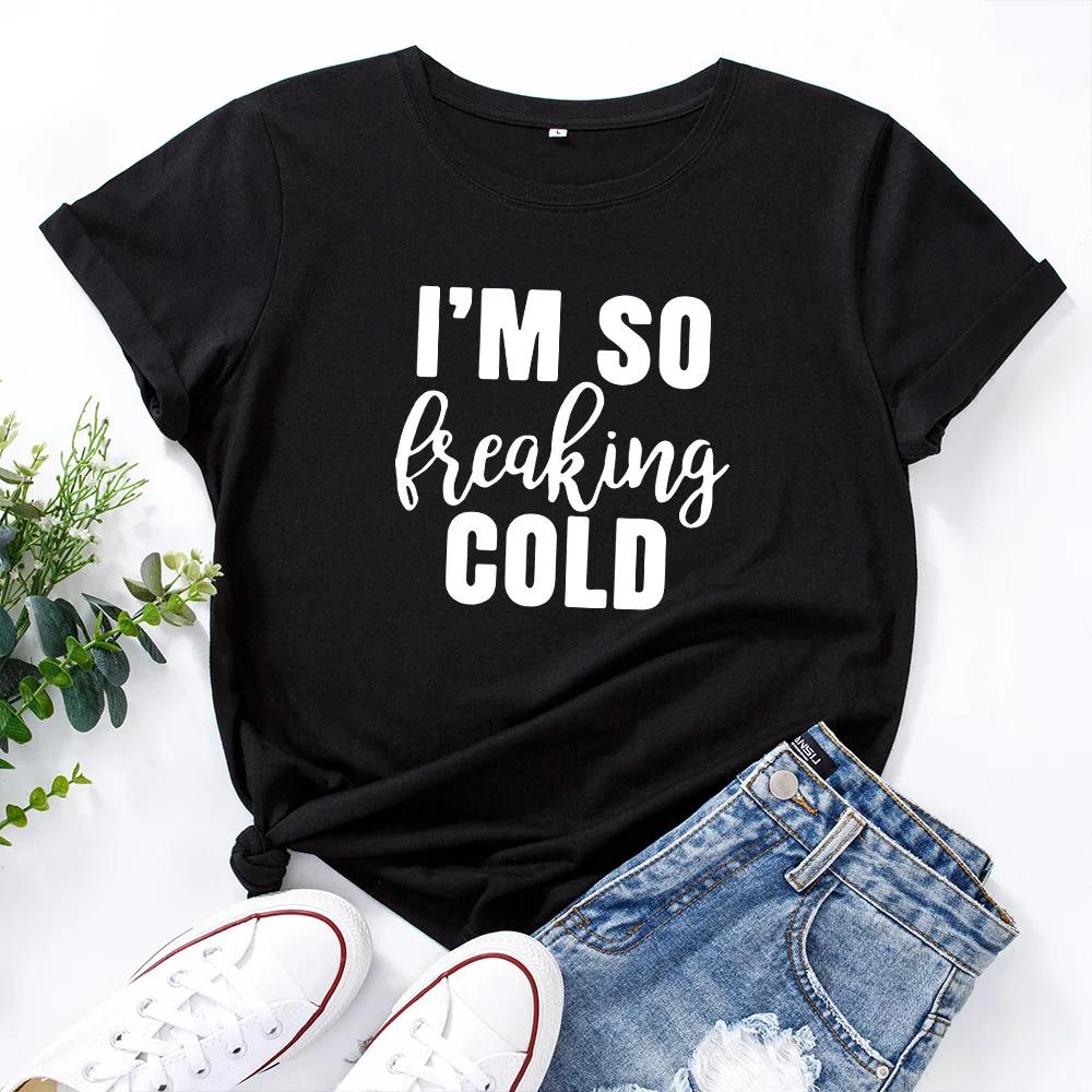 Мне Так Чертовски Холодно Принт Женская Футболка с Коротким Рукавом Круглый Вырез Свободная Женская Футболка Женская Футболка Топы Одежда Camisetas Mujer