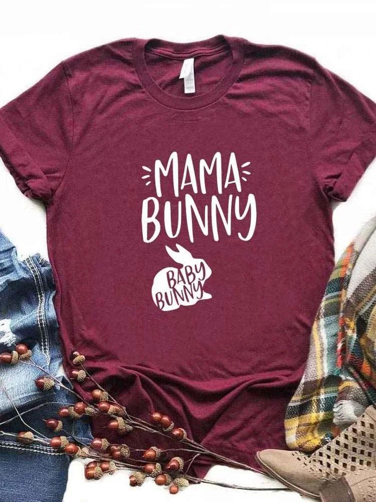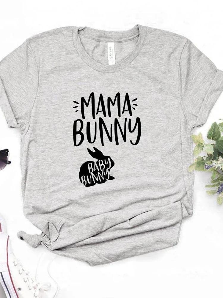 Женская футболка Мама Зайчик Принт Футболка Женская с коротким рукавом Круглый вырез Свободная футболка Дамская Повседневная футболка Одежда Топы