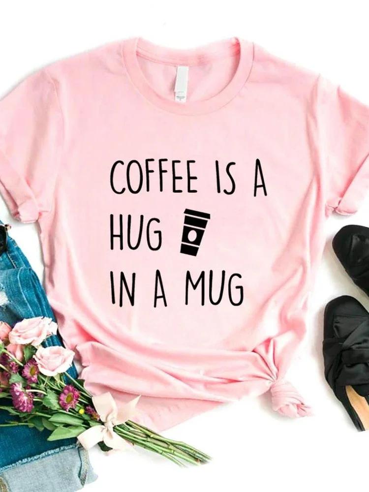 Кофе — это объятие в кружке с принтом женская футболка с коротким рукавом и круглым вырезом свободная женская футболка женская модная футболка топы одежда Mujer