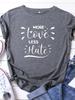 Больше любви меньше ненависти с принтом букв женская футболка с коротким рукавом и круглым вырезом свободная женская футболка женская футболка топы женские футболки — купить товар онлайн с бесплатной доставкой по всему миру!