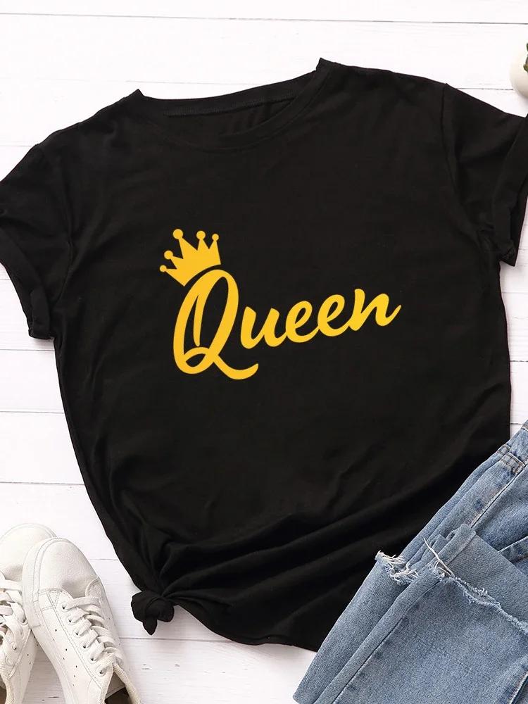 Золотая королева корона принт женская футболка короткий рукав O-образный вырез свободная женская футболка женская футболка топы одежда Camisetas Mujer