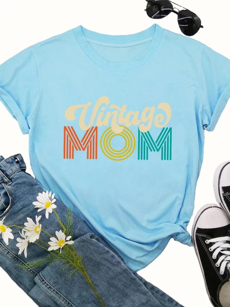 Винтажная женская футболка с принтом в виде буквы «мама», с коротким рукавом и круглым вырезом, свободная женская футболка, женская футболка, топы, одежда, женские футболки