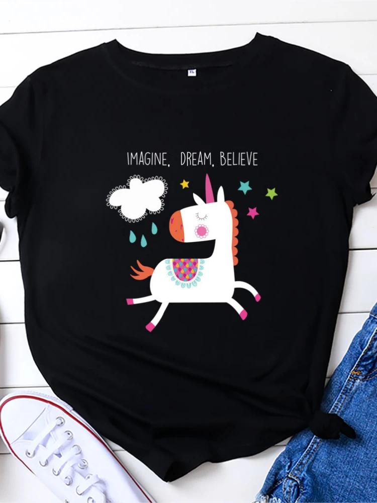Представляй Мечтай Верь Принт Лошади Женская Футболка с Коротким Рукавом Круглый Вырез Свободная Женская Футболка Женская Футболка Топы Camisetas Mujer