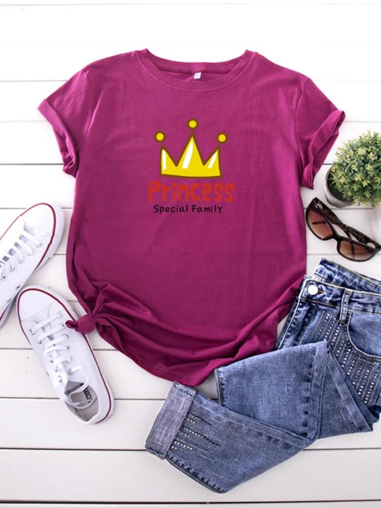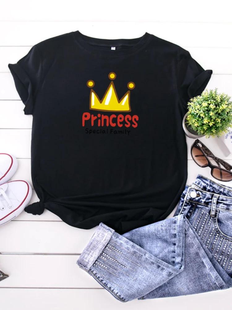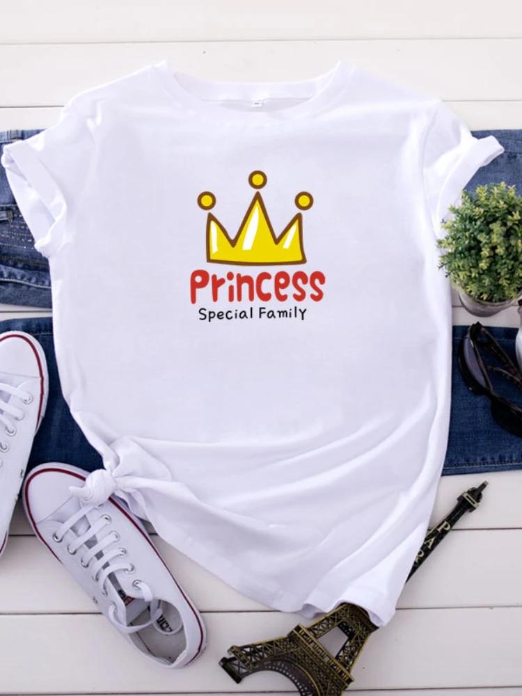 Принцесса Корона Специальный Семейный Принт Женская Футболка Короткий Рукав O Шеи Свободная Женская Футболка Женская Футболка Топы Camisetas Mujer