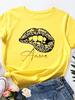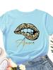 Amore Леопардовый принт губ Женская футболка с коротким рукавом и круглым вырезом Свободная Женская футболка Дамская футболка Топы Одежда Camisetas Mujer