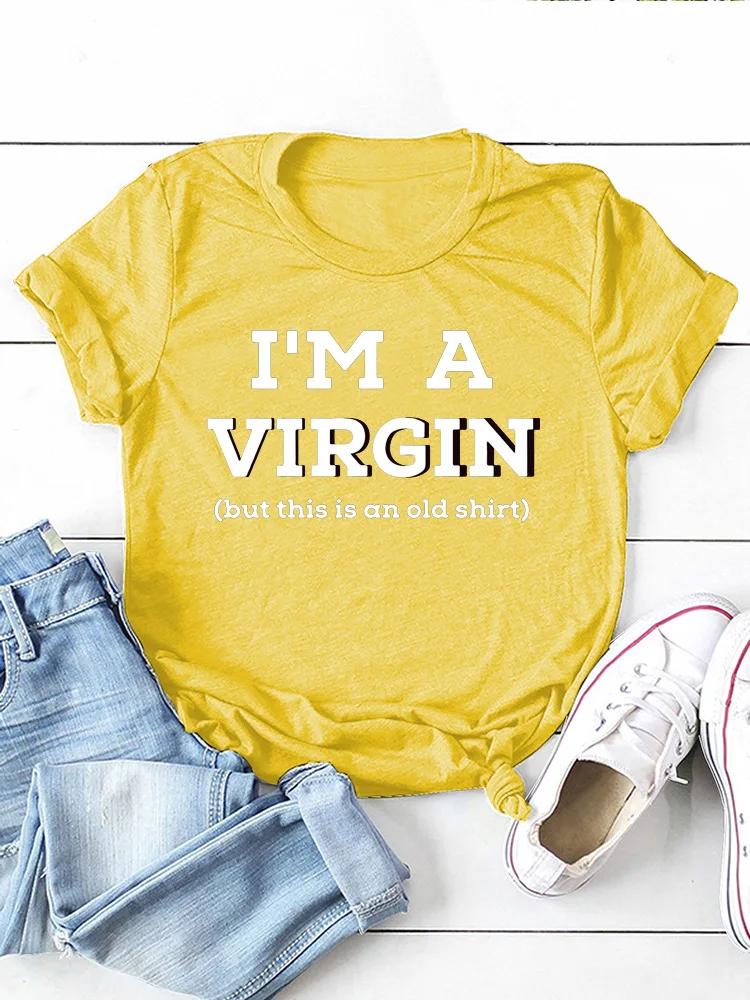 Я девственница Письменный Принт Женская Футболка Короткий Рукав O Шеи Свободная Женская Футболка Женские Футболки Топы Camisetas Mujer