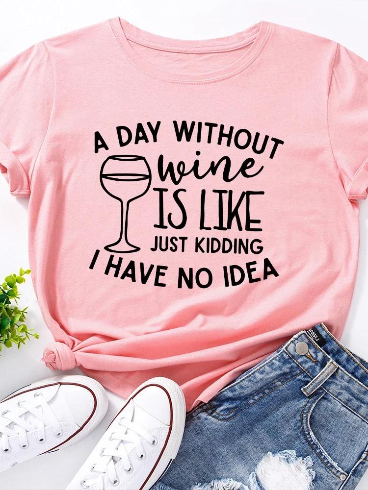 Без вина Шутка с принтом женская футболка с коротким рукавом и круглым вырезом свободная женская футболка женская футболка топы женские футболки — купить товар онлайн с бесплатной доставкой по всему миру!