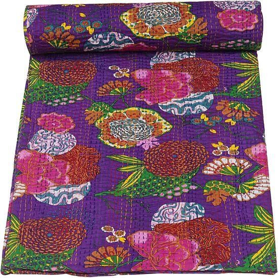 Aizza Trends Стеганое покрывало Канха из чистого хлопка ручной работы с принтом - Традиционный вид Покрывало Канха Гудри - Винтажное ручное шитье Гудри