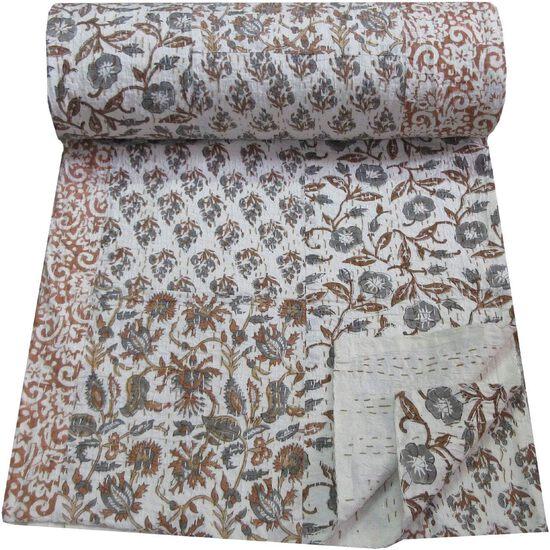 Aizza Trends Стеганое покрывало Канха из чистого хлопка ручной работы с принтом - Традиционный вид Покрывало Канха Гудри - Винтажное ручное шитье Гудри