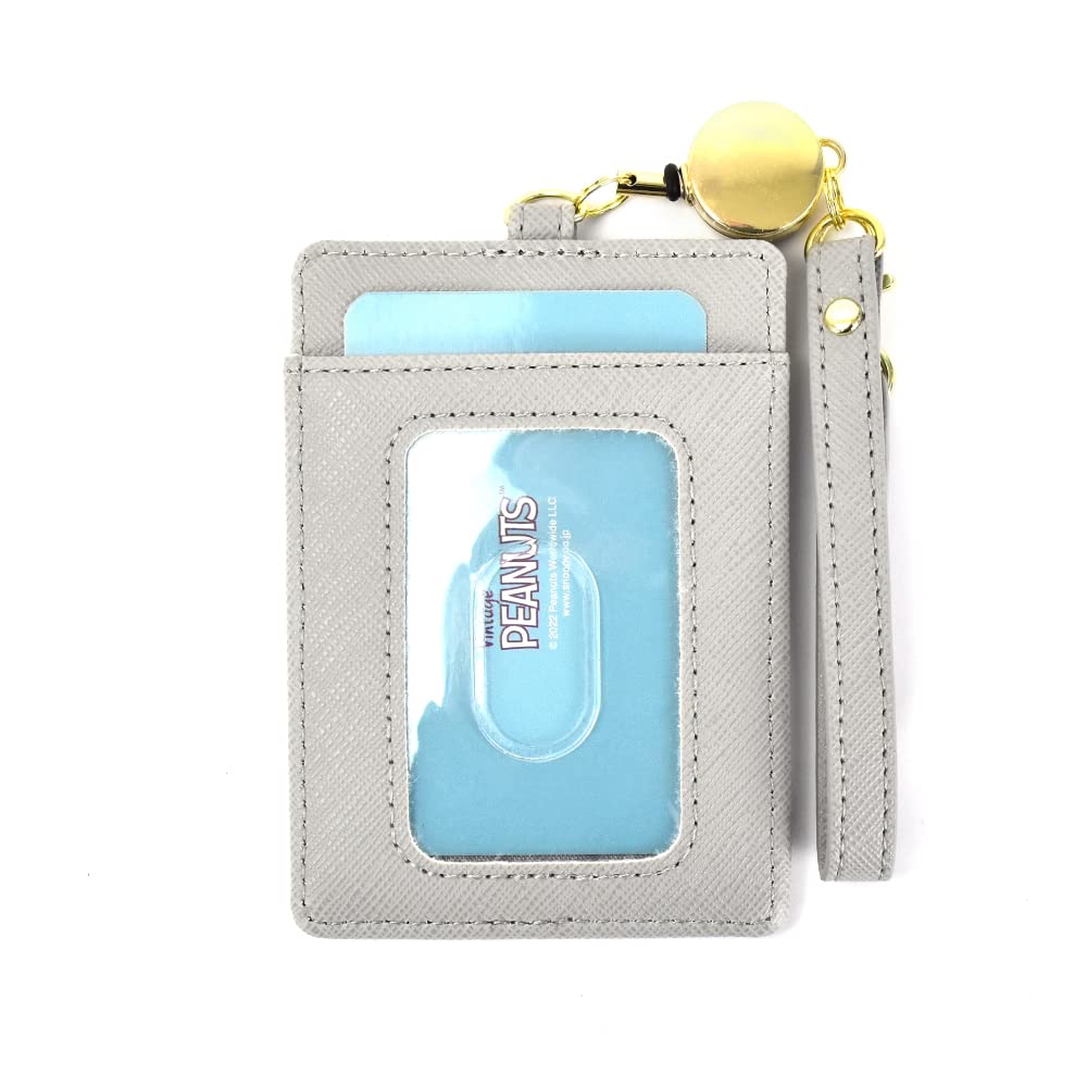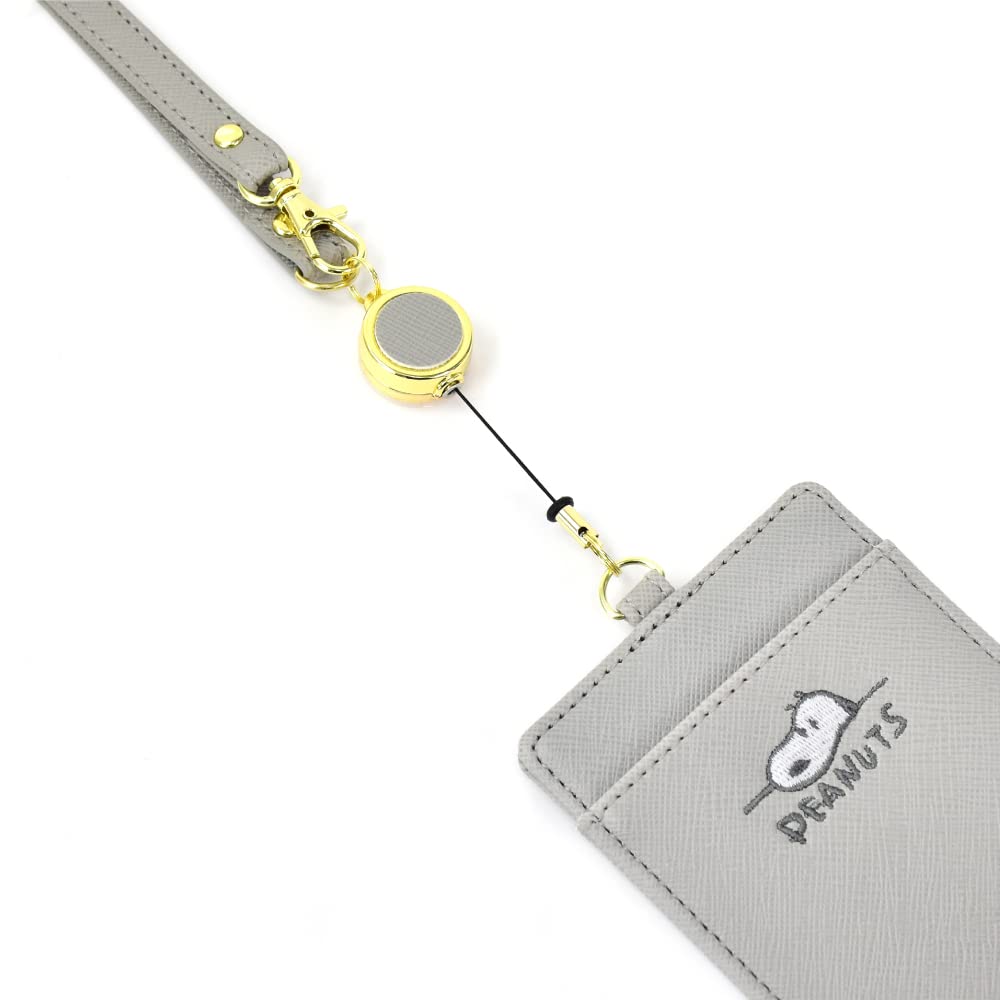 Пропускной чехол Пропускной чехол с 2 катушками для колледжа, средней школы, поездок на работу, стильный 0060 серый [Снупи] Женщины, Студенты, Студенты, Дети, Школа, Милый,