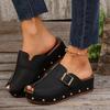 Женские бежевые босоножки на танкетке — удобные открытые сандалии без застежек с пряжками на ремешках и подошвой с заклепками, повседневные летние туфли на платформе красного, черного или бежевого цвета