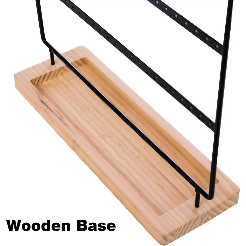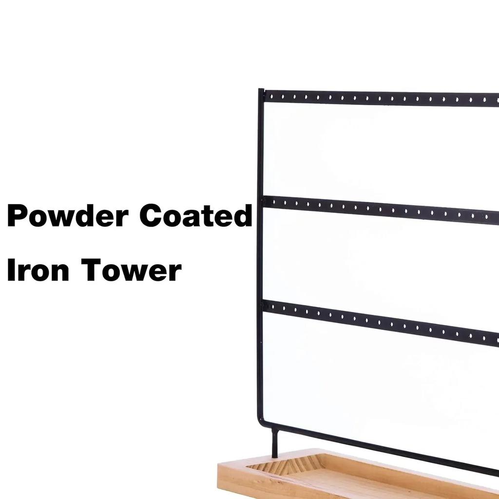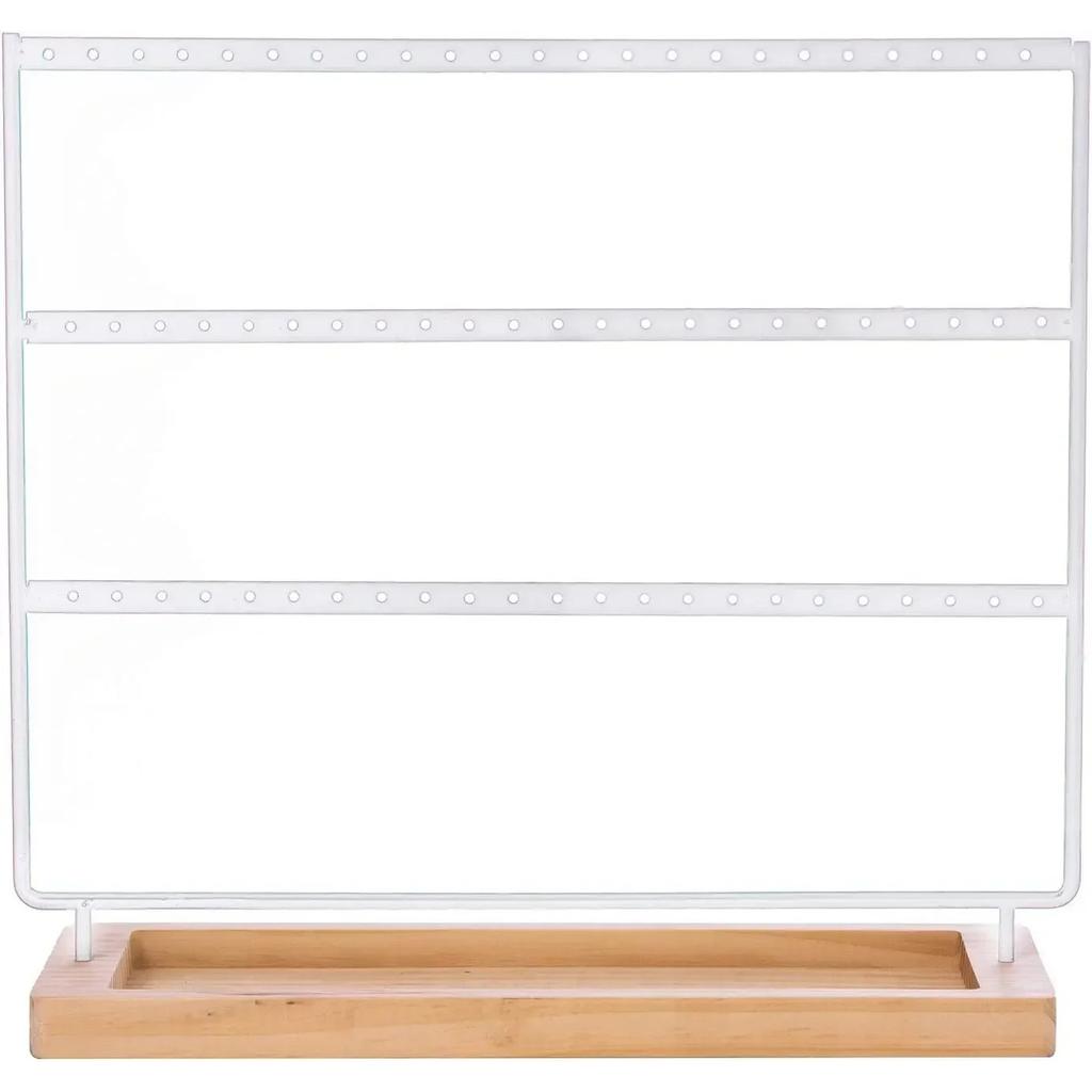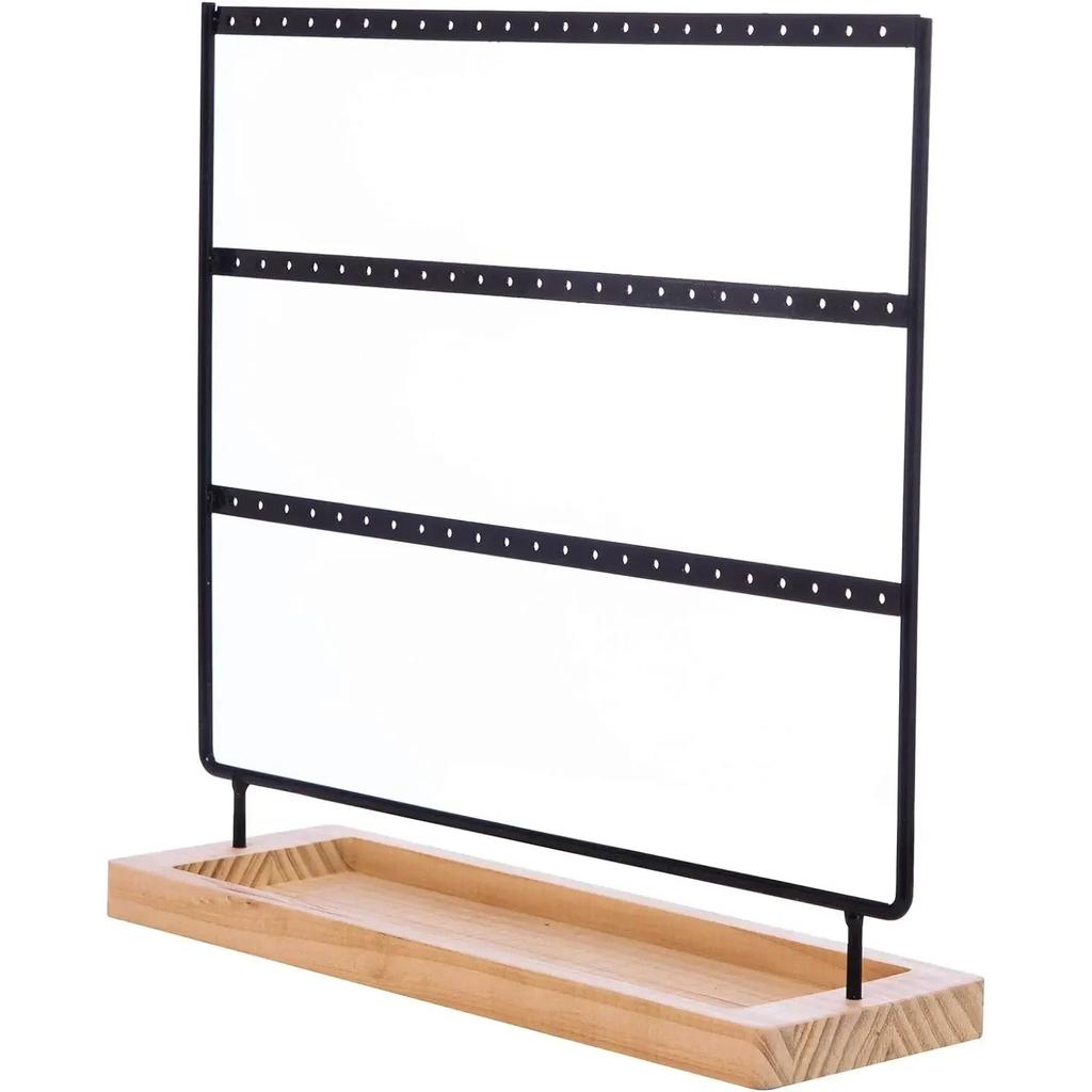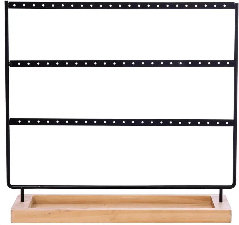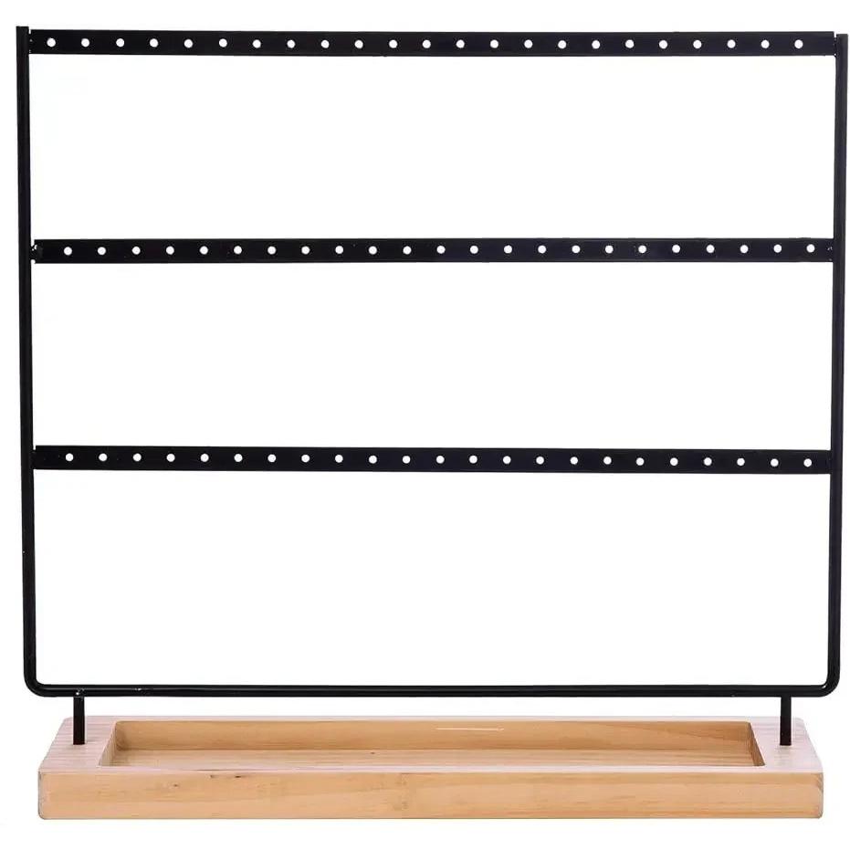 Подставка для сережек, 3-уровневая, 69 отверстий, органайзер для сережек, подставка-дисплей с деревянным лотком для хранения, настольный держатель для браслетов и ювелирных изделий