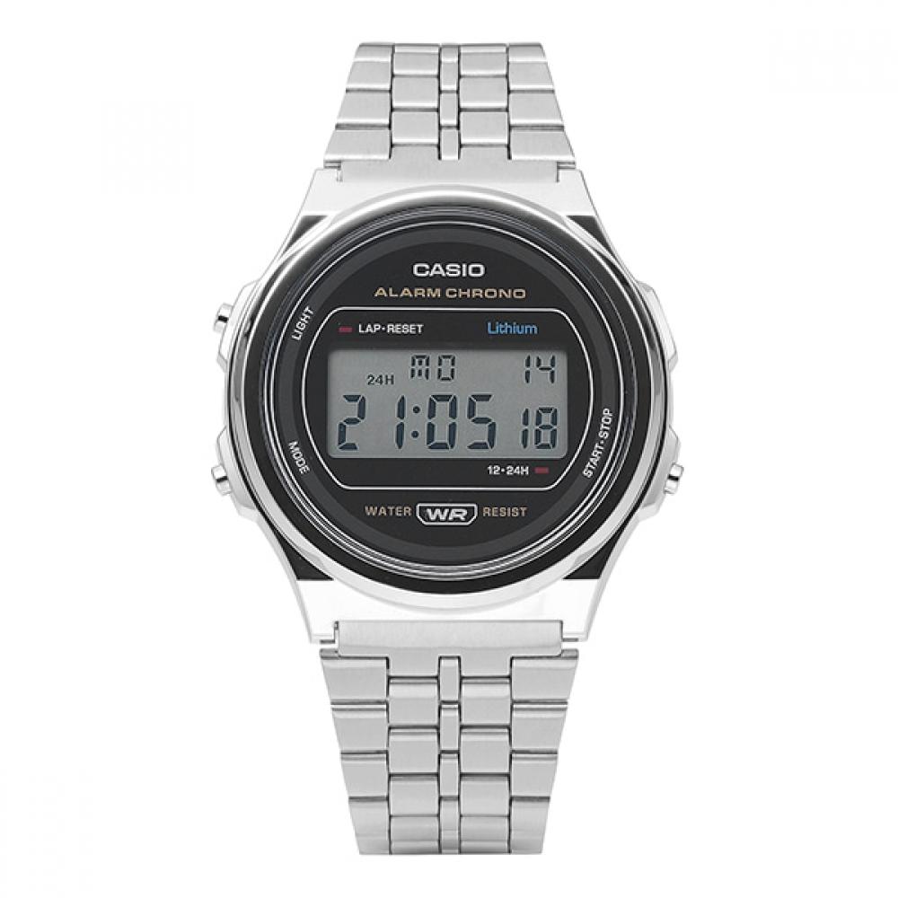 Casio A171WE-1A имеет винтажный ретро-дизайн и характеризуется классическим круглым корпусом и браслетом из нержавеющей стали.. Унисекс-дизайн позволяет носить его как мужчинам, так и женщинам, а пряжка-слайдер облегчает регулировку длины ремешка для удобной посадки.. Часы оснащены водонепроницаемой функцией, подходящей для повседневного использования. (5ATM) и предлагает различные функции, включая светодиодную подсветку, секундомер, будильник, почасовой сигнал, полный автоматический календарь, отображение даты и дня недели.. Изготовленные из минерального стекла и корпуса/безеля из смолы с хромированным покрытием, а также с ремешком из нержавеющей стали, эти часы очень долговечны.