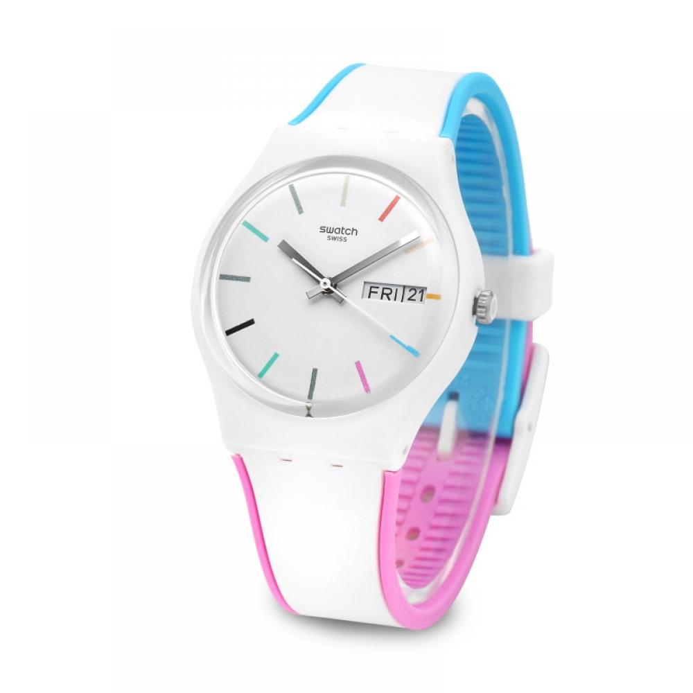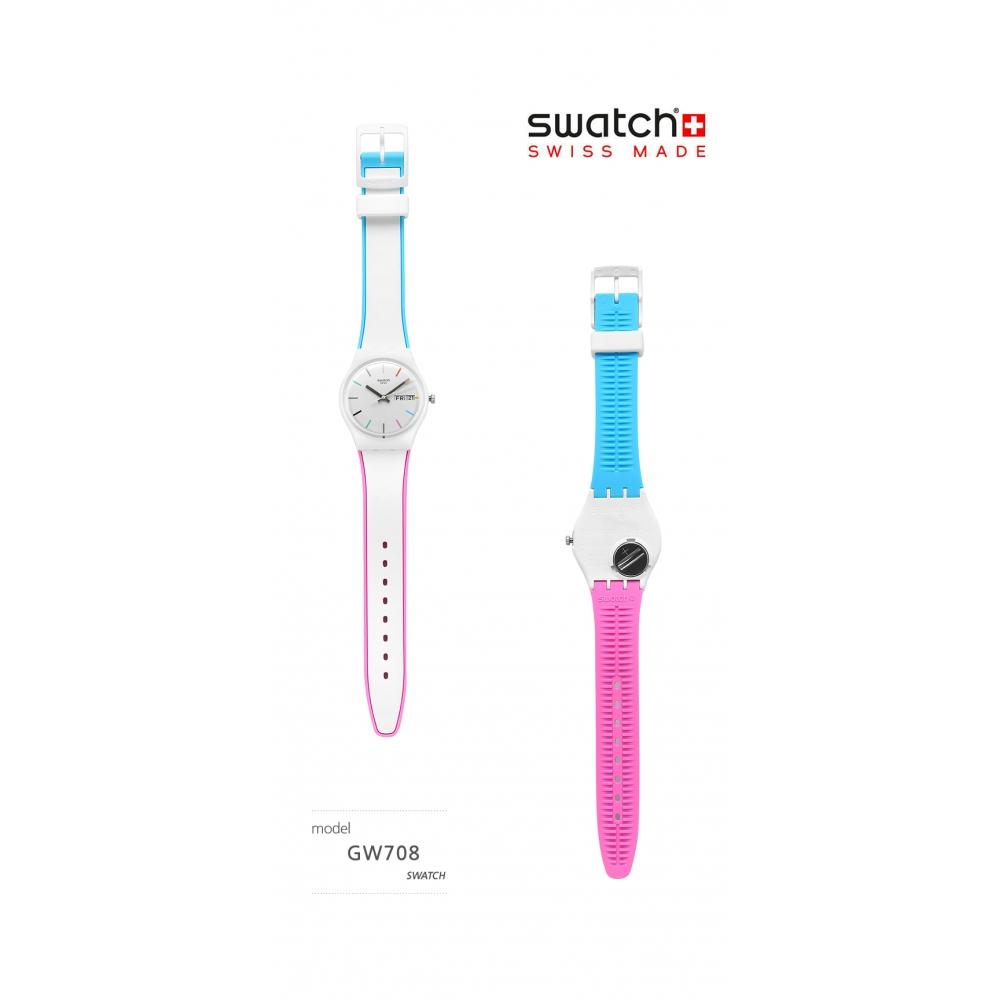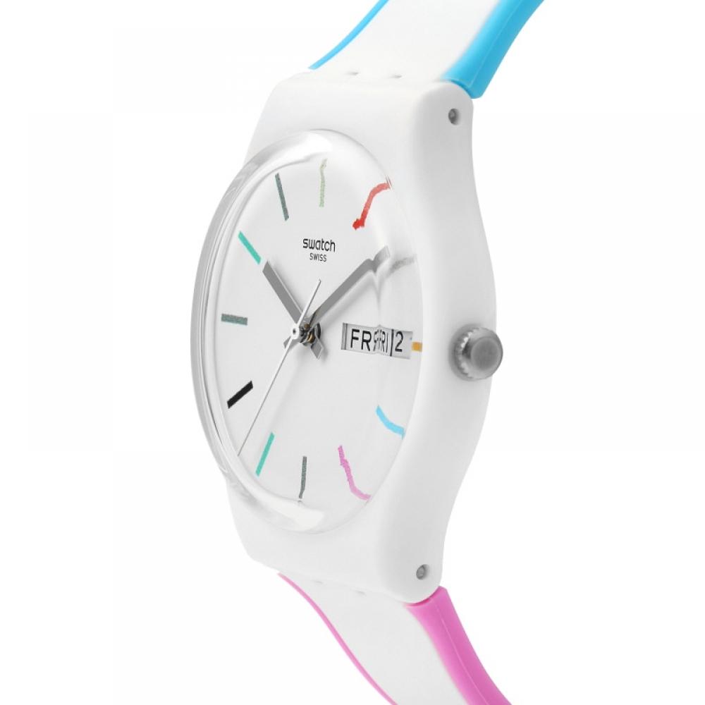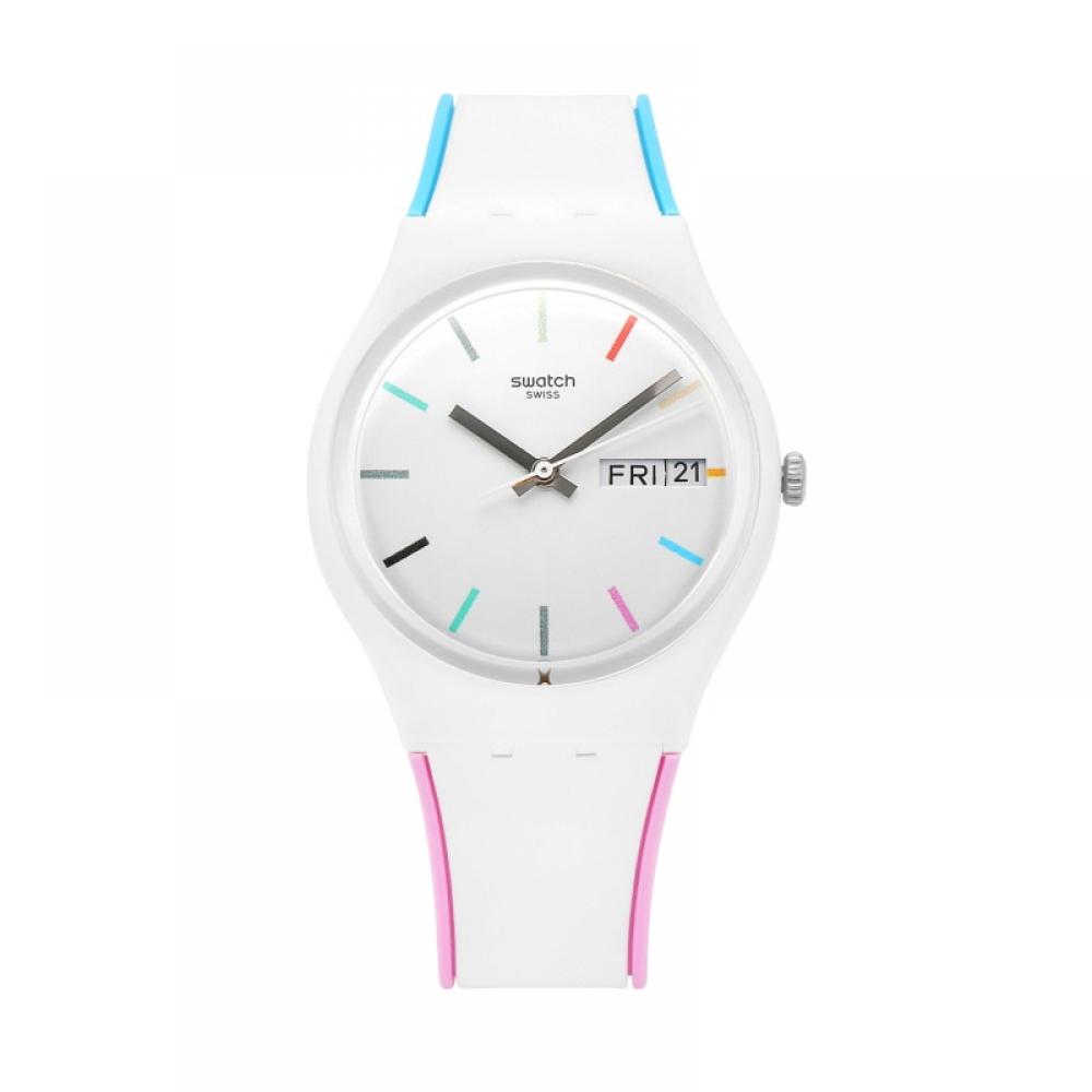 Часы-унисекс Swatch GW708 EDGYLINE из уретана белого цвета представляют собой простой, но изысканный дизайн.. Эти часы изготовлены из пластика, что обеспечивает их легкость при ношении.. Он предлагает такие функции, как отображение часов, минут, секунд, даты и дня недели.. Кроме того, он обладает водонепроницаемостью, подходящей для повседневного использования, что делает его идеальным для повседневной носки.
