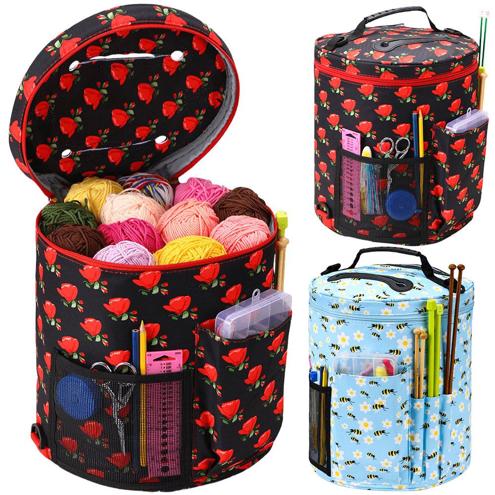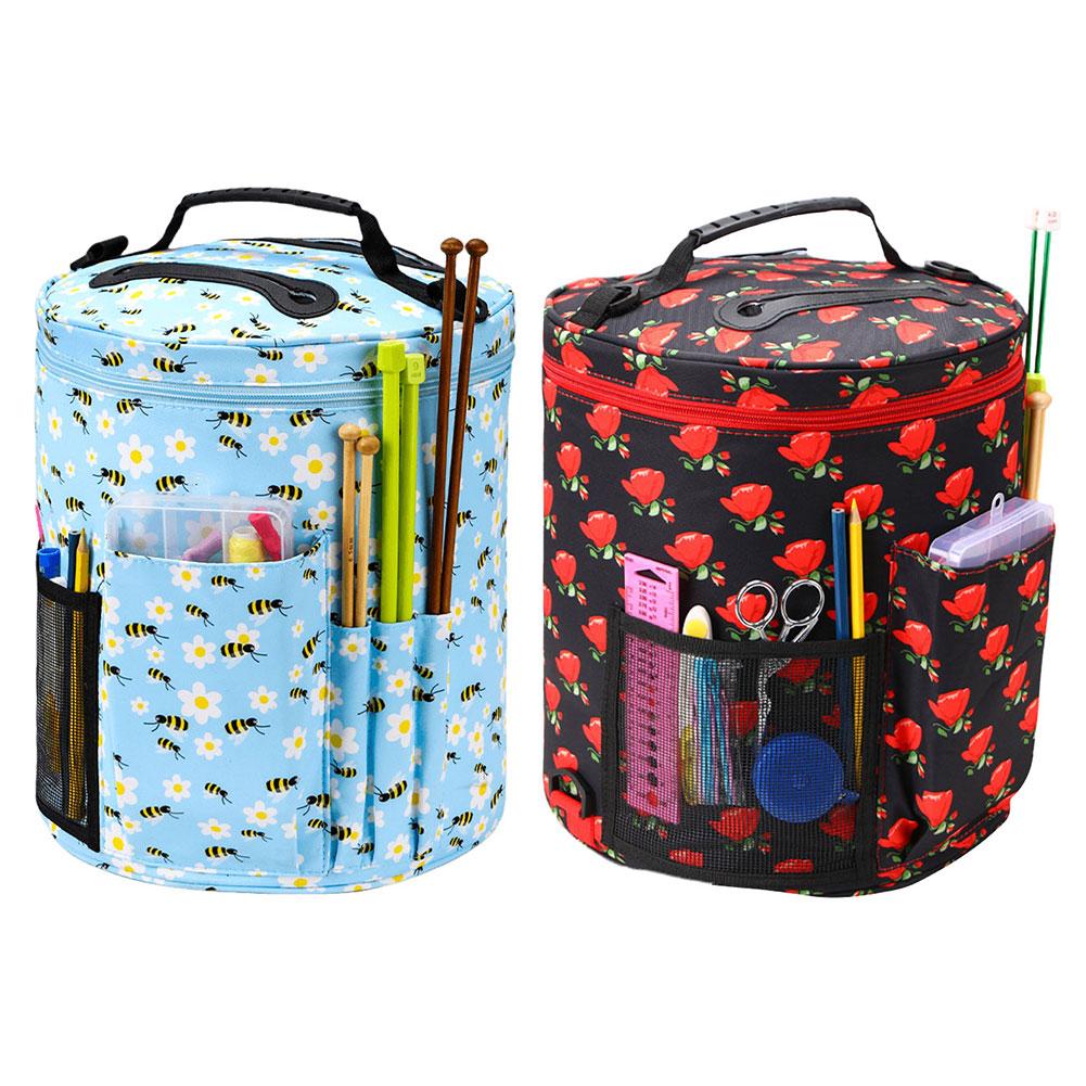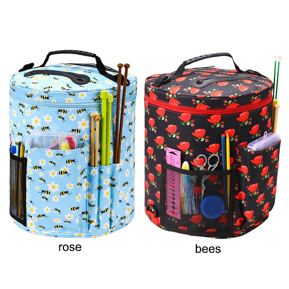 Сумка для вязания крючком из ткани Оксфорд с узором «Роза» Сумка для вязания с карманами Держатель пряжи с ручкой для крючков и спиц