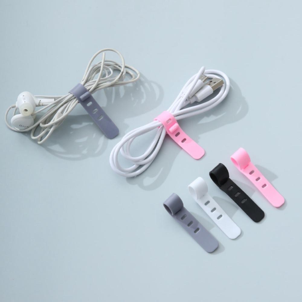 6 Colors Data Cable Storage Device 4 Holes Bobbin Winder Portable Soft Rubber Strap