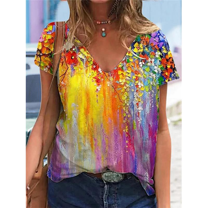 Новая футболка с цветочным принтом 3D, женская футболка с V-образным вырезом и коротким рукавом, топы Y2k, уличная одежда, футболки больших размеров в стиле Харадзюку, женская одежда — купить товар онлайн с бесплатной доставкой по всему миру!