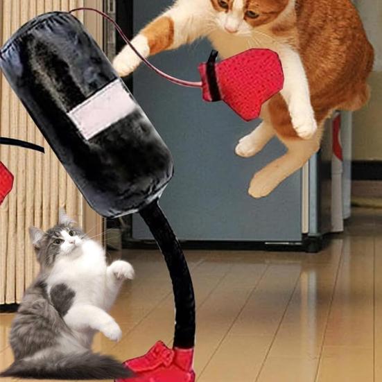 Стимулируйте интерес кошек к спорту: Наблюдайте, как оживают естественные инстинкты вашей кошки с вращающимися боксерскими перчатками. Поощряйте активные игры, когда ваша кошка прыгает, шлепает и участвует в игривых схватках, способствуя физической активности и умственной стимуляции.