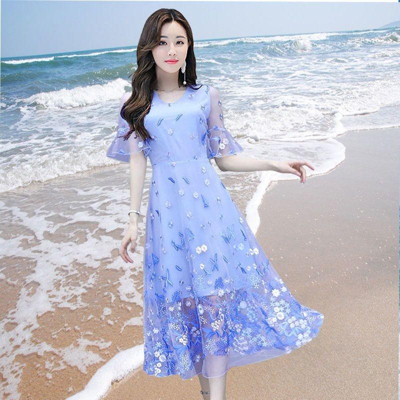 Летнее вышитое макси-платье со сказочным оттенком, дизайн для стильных дам