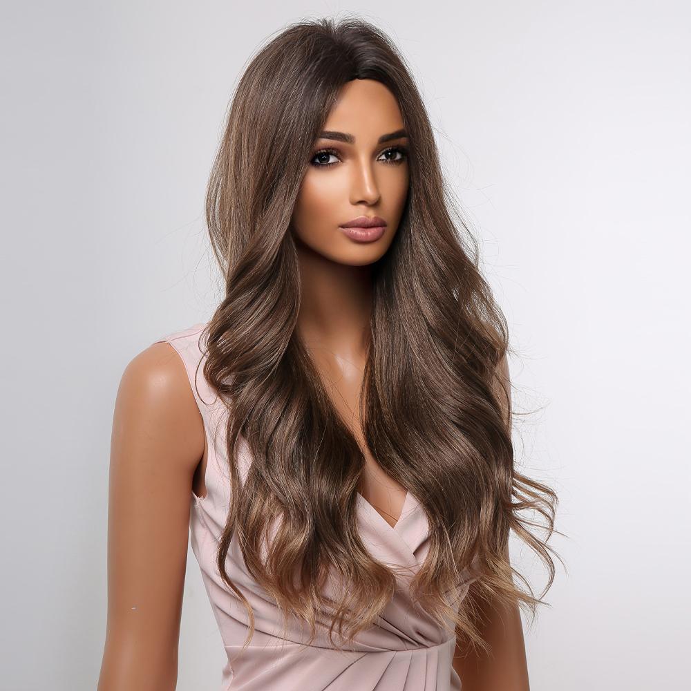 Ombre Коричневый Длинный Волнистый Парик Из Синтетических Волос для Чернокожих Женщин Афро Средняя Часть Термостойкое Волокно Косплей Парики Для Ежедневного Использования Волос