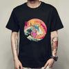 Новая модная летняя мужская футболка, повседневная футболка с коротким рукавом и принтом самурая и кота, аниме-футболка для мужчин и женщин, японские топы Neko Sushi Wave