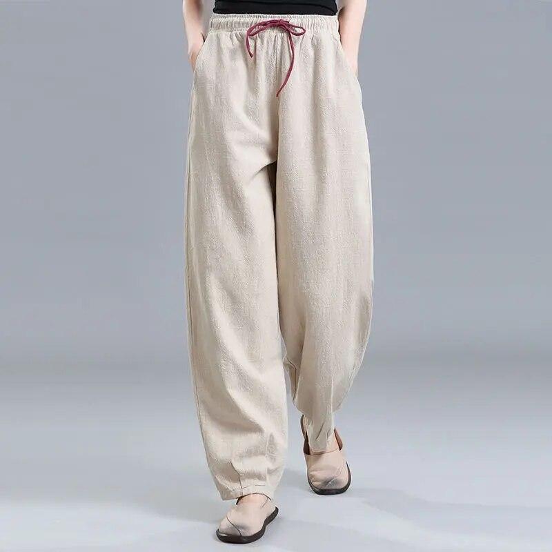 Женские летние брюки Харлан из хлопка с высокой талией и конопли, модные свободные и универсальные брюки-фонарики ярких цветов, большие размеры