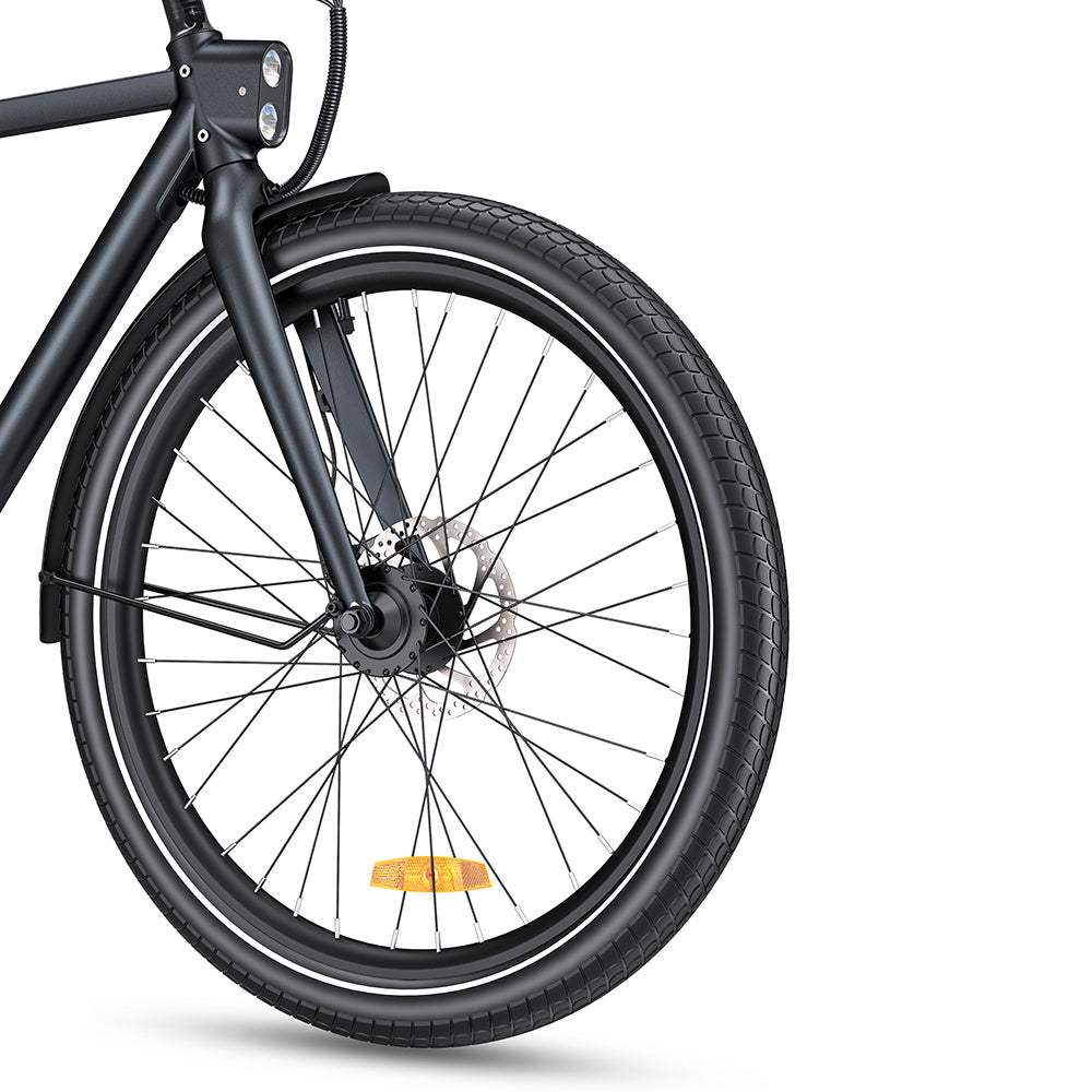 27.5 inch*2.4 slim city tires that are anti-slip, wear-resistant, and have a smooth cornering profile to deliver better speed on the road. With highly reflective strips to increase visibility in low-light conditions. Equipped with fenders to protect you and your outfit and a rear rack to carry your essentials.