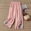 Женские брюки с вышивкой в стиле ретро, свободные, плиссированные, универсальные, широкие брюки для отдыха, в стиле бохо, с косыми карманами, дышащие брюки