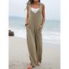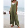 Летний новый однотонный накладной карман модный комбинезон с V-образным вырезом широкие брюки для женщин — купить товар онлайн с бесплатной доставкой по всему миру!