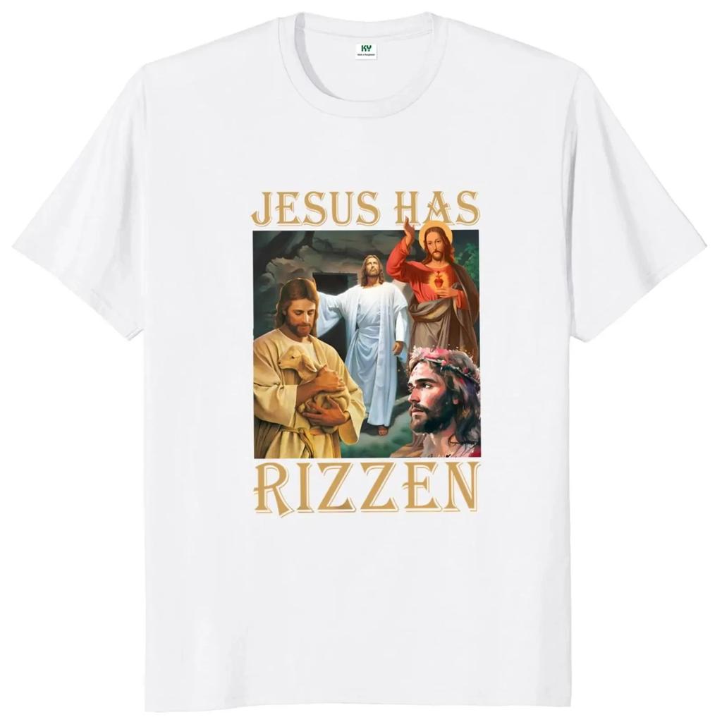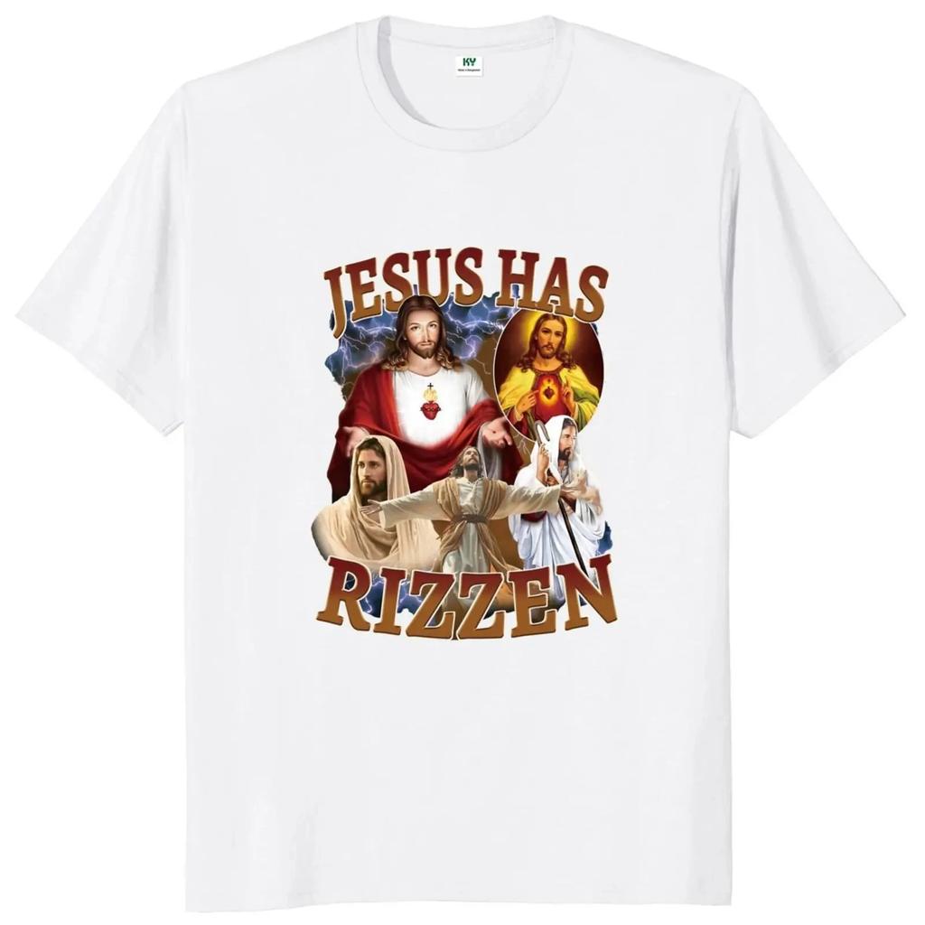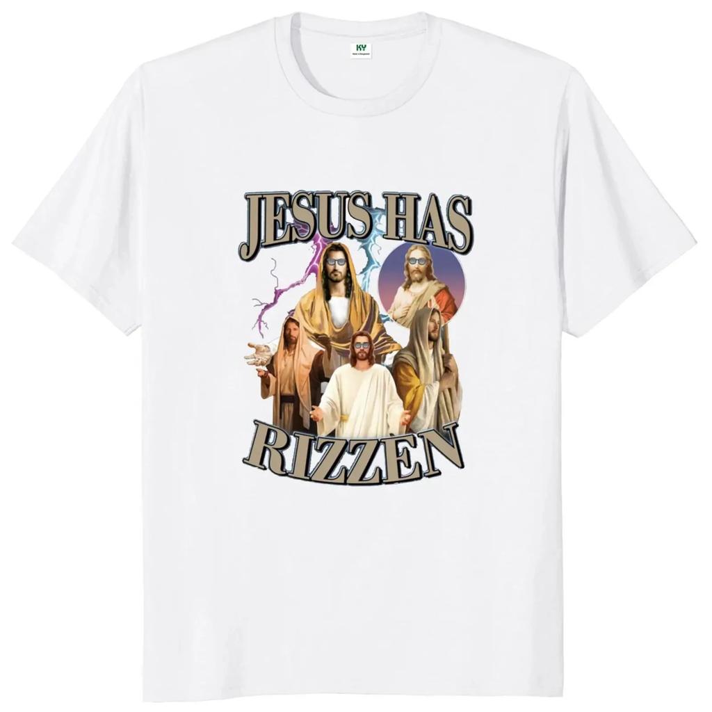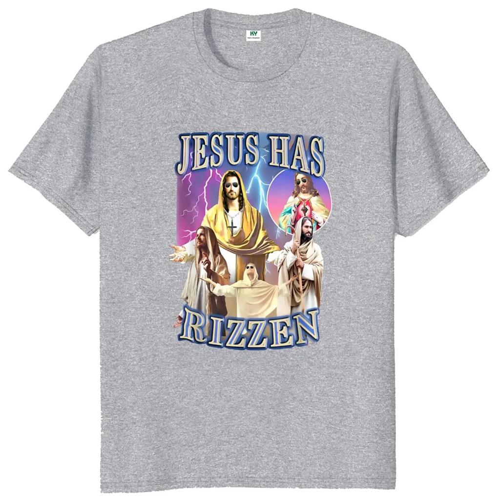Футболка Jesus Has Rizzen в стиле ретро, религиозная, уличная одежда в стиле Харадзюку, 100% хлопок, унисекс, летние футболки с круглым вырезом, свободные топы
