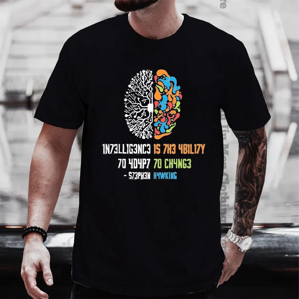 Интеллект - это способность адаптироваться к изменениям. Топы для мужчин и женщин. Рубашка. Свободная одежда. Хлопковая футболка большого размера. Летняя футболка. Хип-хоп. Топы. Футболка.
