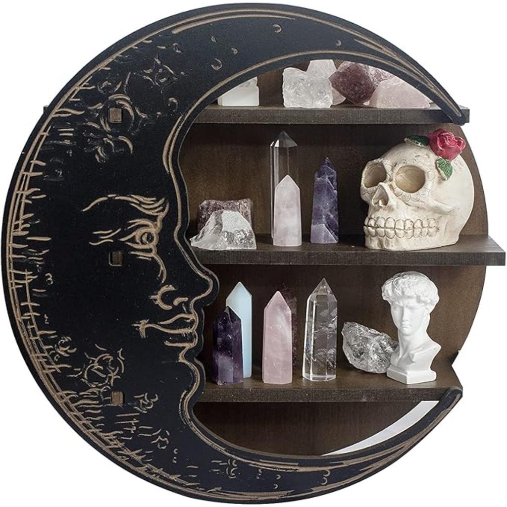 Полка в виде полумесяца, деревенский деревянный держатель для хрусталя для лечебных камней и эфирных масел, настенная хрустальная полка-дисплей для настенного декора, ведьмины подарки