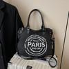 Большая сумка-тоут из ретро-холща - регулируемый плечевой ремень с принтом винтажных парижских штампов - стильная сумка через плечо для женщин