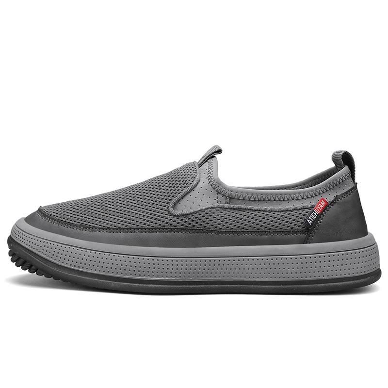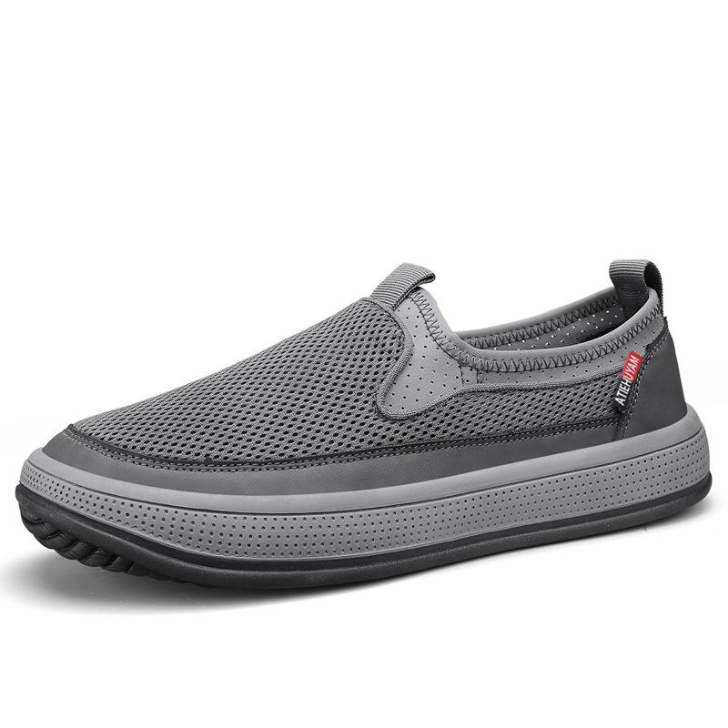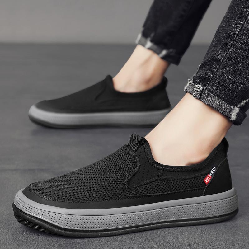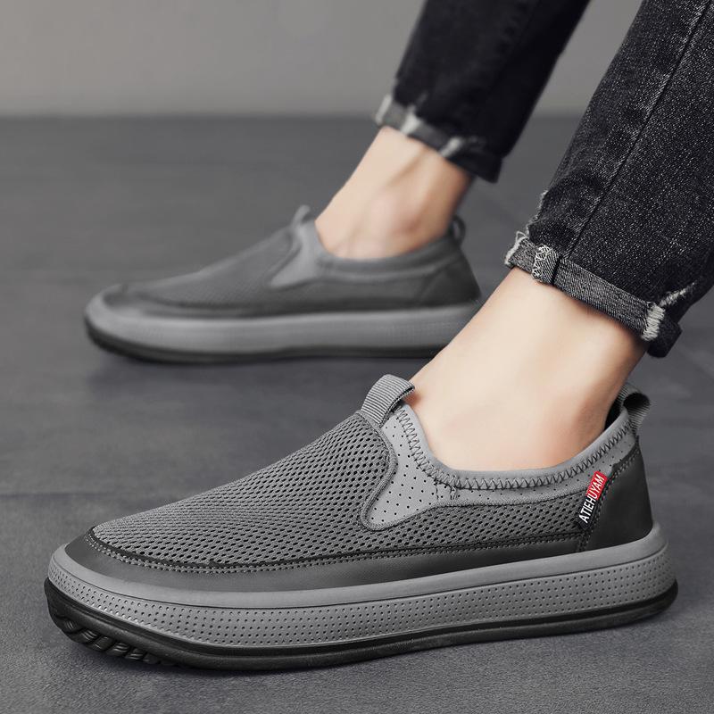 Мужская обувь 2024 года, новые летние туфли из дышащей ткани, мужские повседневные туфли с одной педалью, сетчатые туфли с плоским дном для ленивых ног