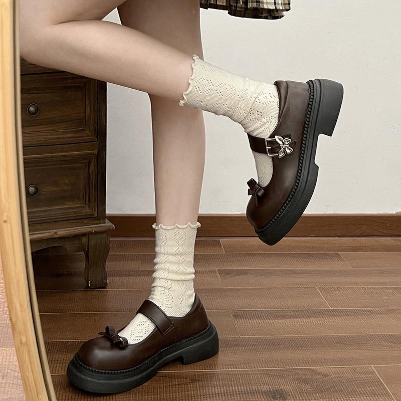 Черные французские туфли на толстом каблуке и платформе, кожаные туфли женские, новинка 2025 года, летние туфли Мэри Джейн, увеличивающие рост, туфли-лодочки