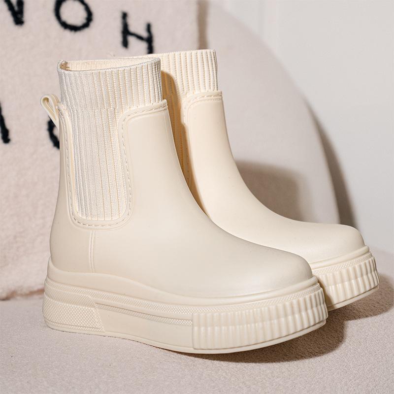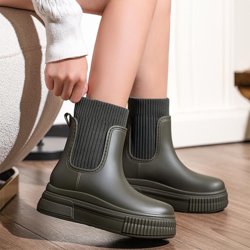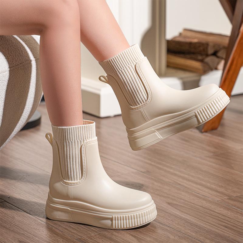 Новые средние резиновые сапоги японская мода женская дождевая обувь женская взрослая водонепроницаемая и нескользящая летающая тканая водная обувь