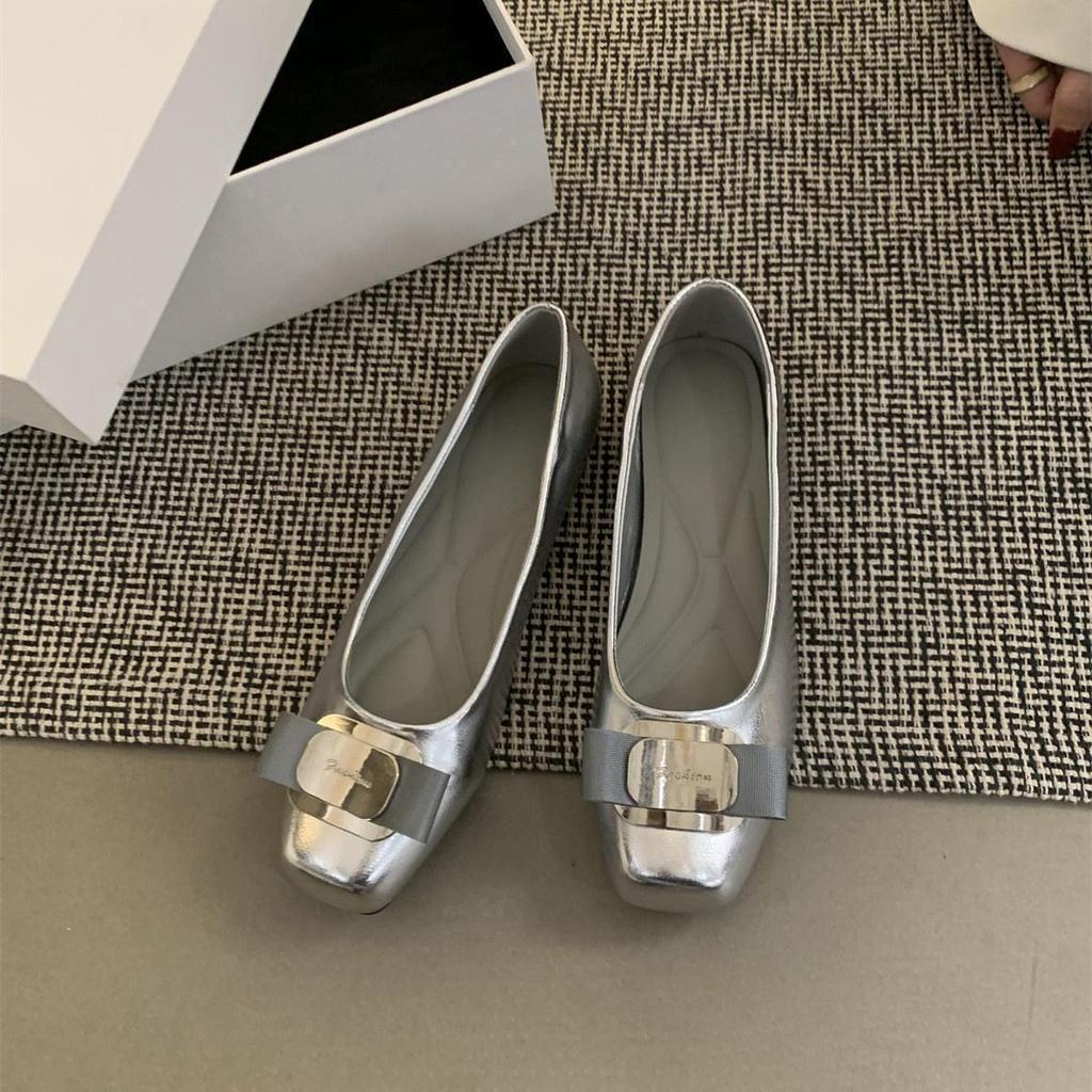 Женские туфли на низком каблуке, женские весенние и осенние новые серебристые туфли для бабушек, французские вечерние туфли в стиле феи, шапочки на плоской подошве