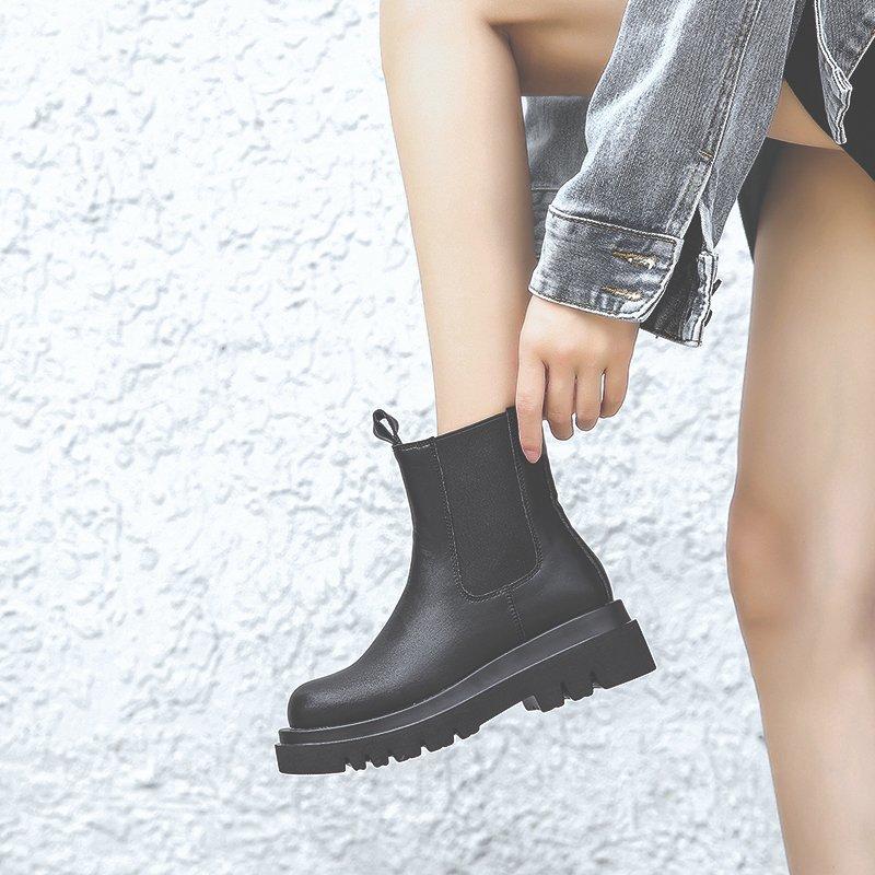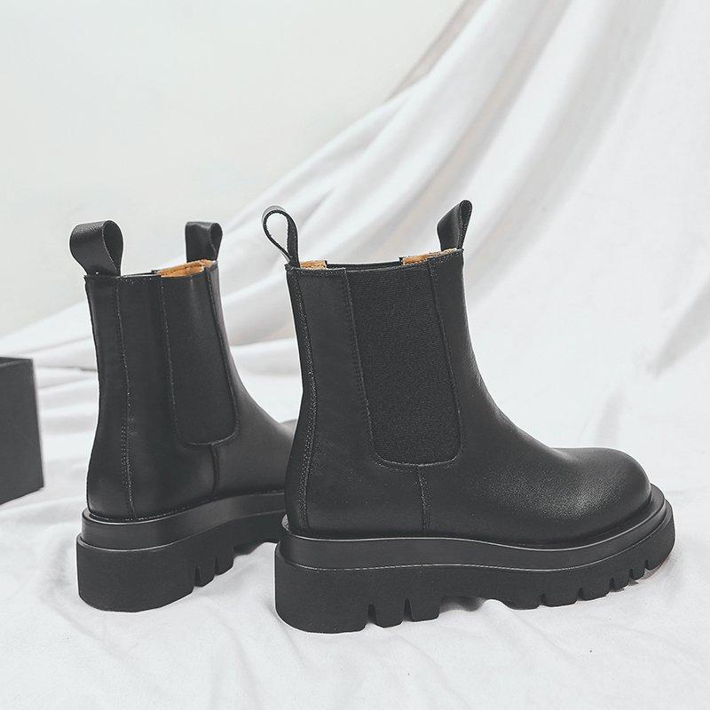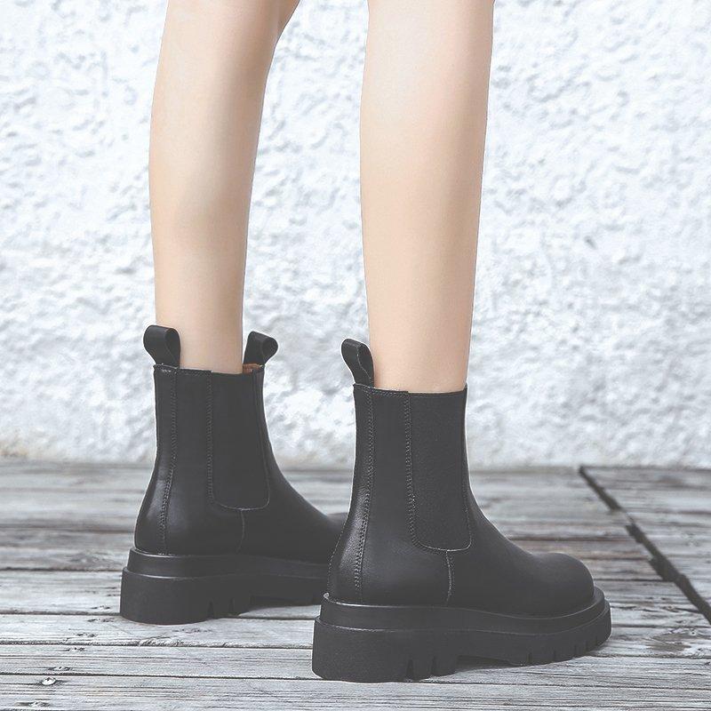 [DongJI] Кожаные короткие ботинки челси женские 2024 новые универсальные короткие ботинки британские средние ботинки Martin Boots