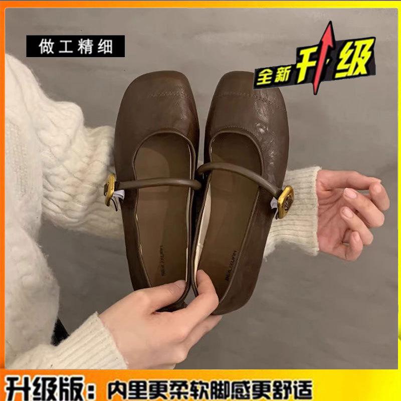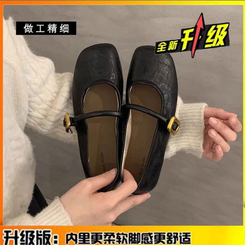 Туфли Мэри Джейн из кожи с мягкой подошвой, женские туфли из кожи, весна-лето 2025, новые универсальные туфли с одним ремешком на плоской подошве