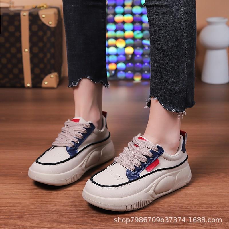 Весенние новые туфли из толстой кожи с увеличенной высотой каблука, женские модные дышащие туфли с мягкой подошвой, белые туфли на каждый день, спортивная обувь для сноуборда