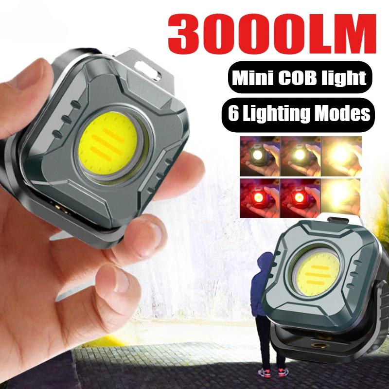 Карманные фонари COB, брелок-фонарик, USB-перезаряжаемый, 6 режимов, супер яркий, мини-портативный рабочий фонарь с магнитом для кемпинга на открытом воздухе
