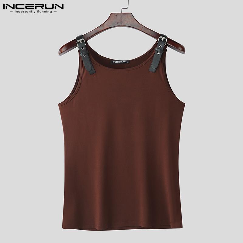 INCERUN Мужские повседневные спортивные топы с круглым вырезом без рукавов и регулируемым ремнем