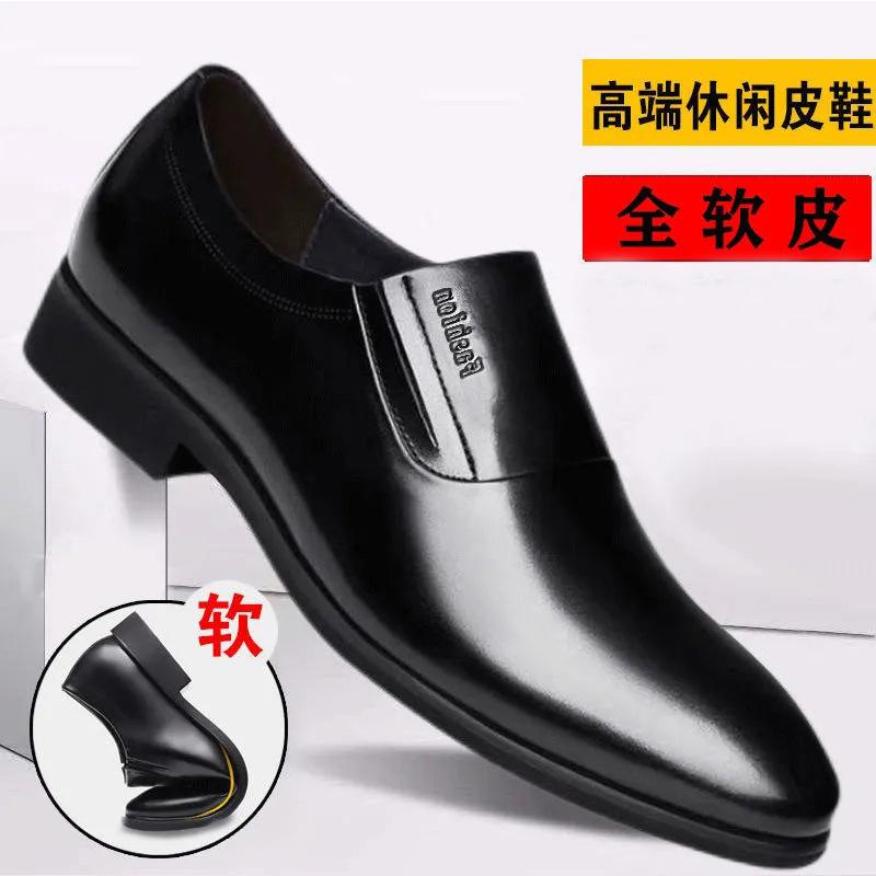 Мужские кожаные туфли весна и осень дышащие деловые повседневные мягкие кожаные толстые подошвы мужские официальные туфли для пожилых кожа мягкая подошва отец