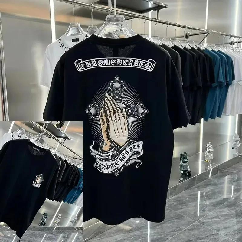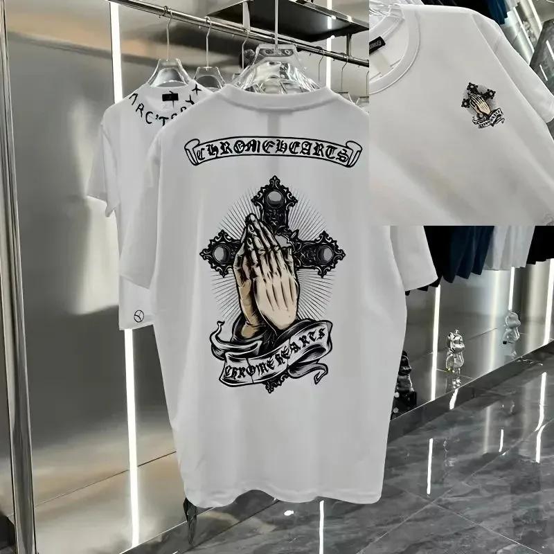 Популярная футболка с коротким рукавом с черепом, мужская и женская, тяжелая, из чистого хлопка, с принтом креста из лент, свободная, новый модный бренд