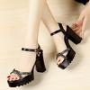 Сандалии на высоком каблуке, толстый каблук, водонепроницаемая платформа, универсальная, тонкий ремешок, летняя мягкая кожа, удобная и увеличивающая рост обувь