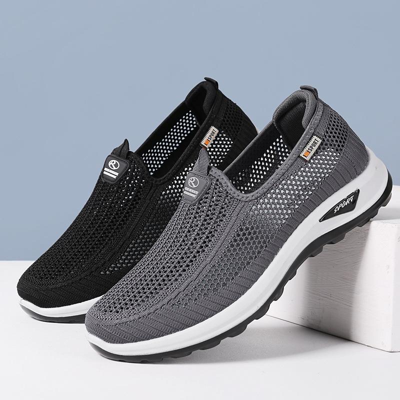 Летние новые туфли из ткани Old Beijing, мужская спортивная повседневная обувь, мягкая подошва, нескользящая, дышащая, сетчатая обувь для пап среднего и пожилого возраста