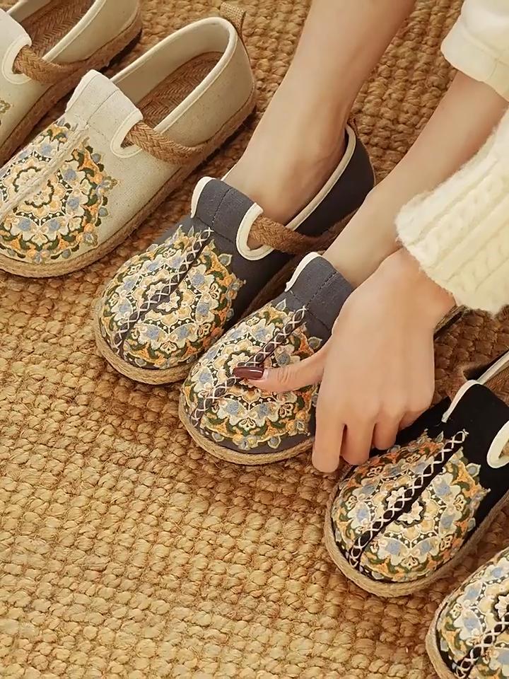Johnature Cotton Linen Women's Flats Retro Round Toe Handmade Ethnic Style Embroidered Cloth Shoes — купить товар онлайн с бесплатной доставкой по всему миру!