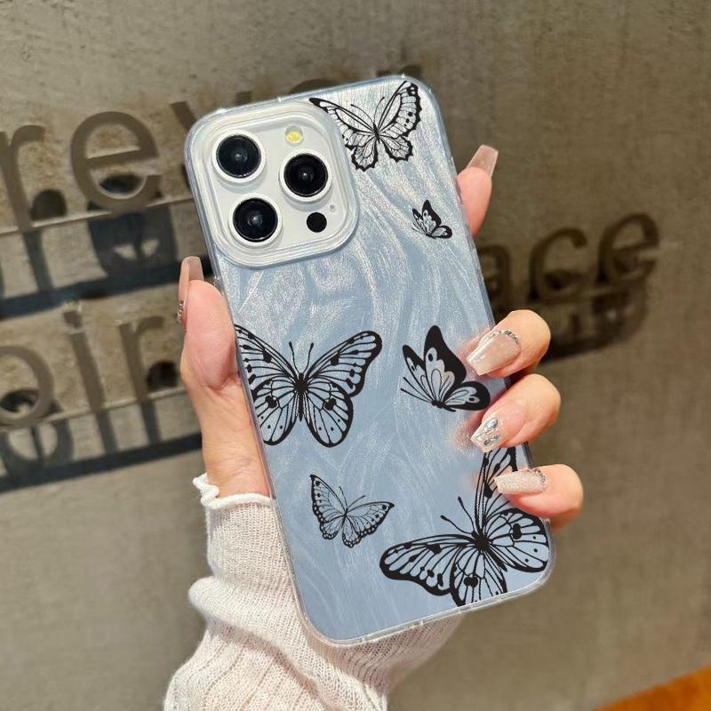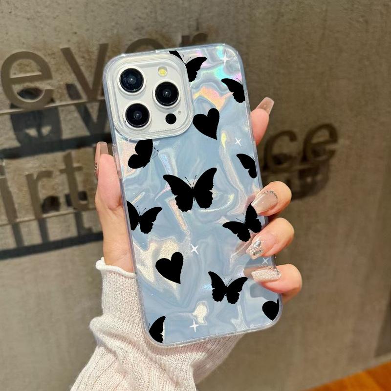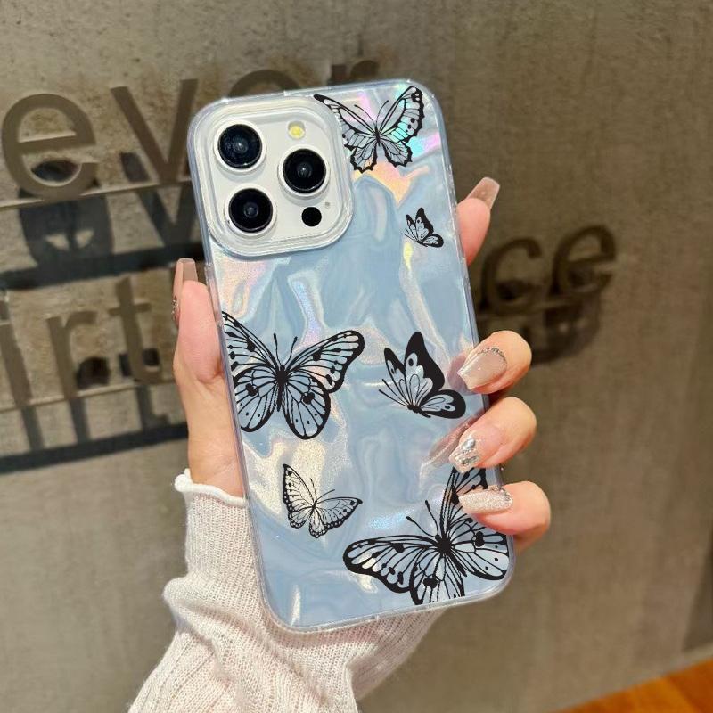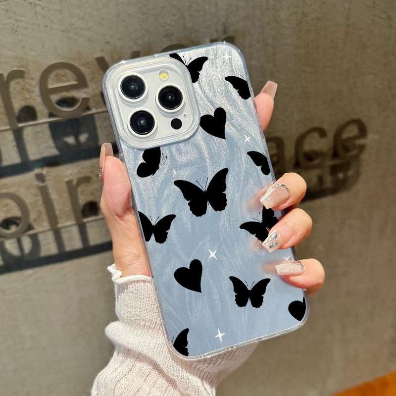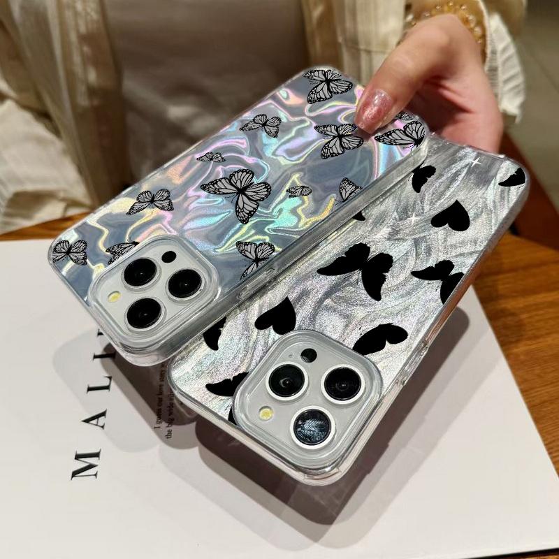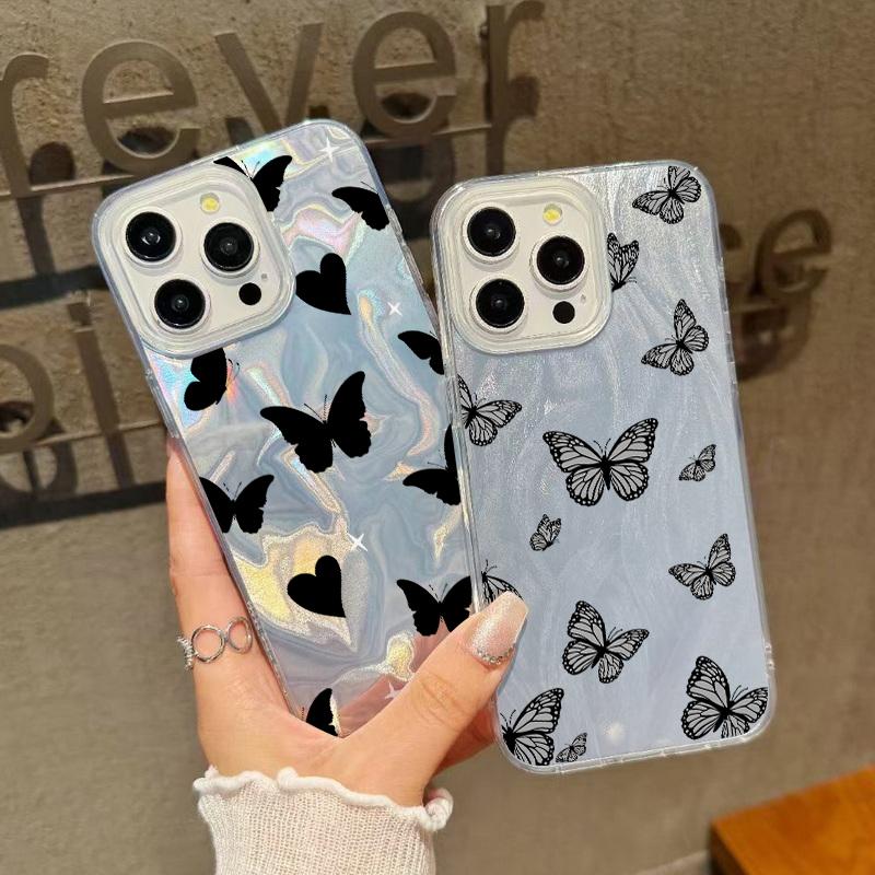 Чехол для телефона с блестками и перьями и принтом бабочек для iPhone 16 Pro 15 Pro Max 14 13 12 11, блестящий, ударопрочный, мягкий, гибридный, жесткий, задняя крышка из ПК